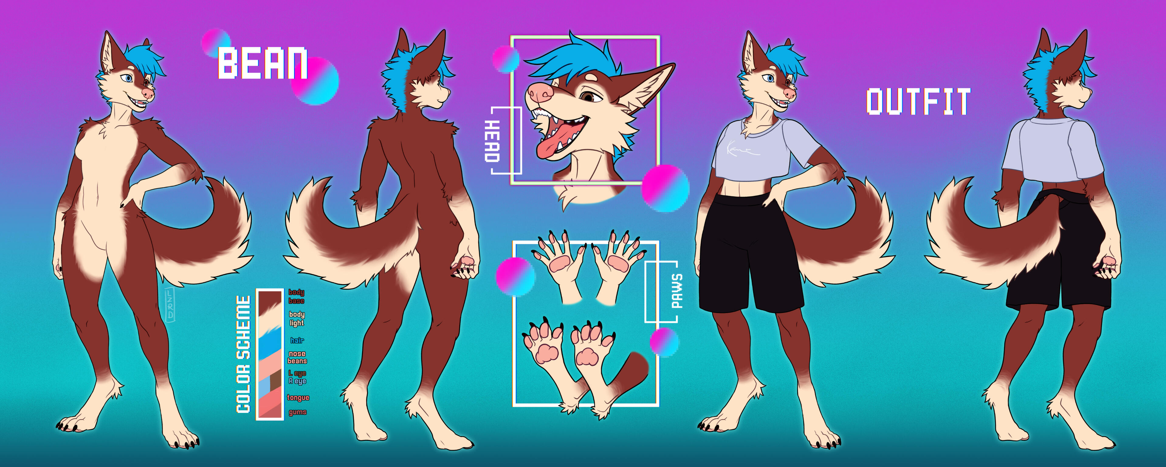 Includes: 2 fullbodies (front and back 3/4), 1 headshot (mouth view), color palette and information (if desired)